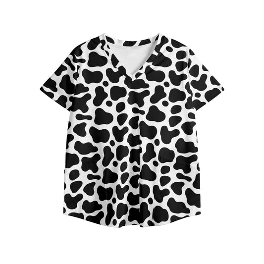 Cow Print Nursing Scrub Top Printed V Neck Workwear Nursing Tops