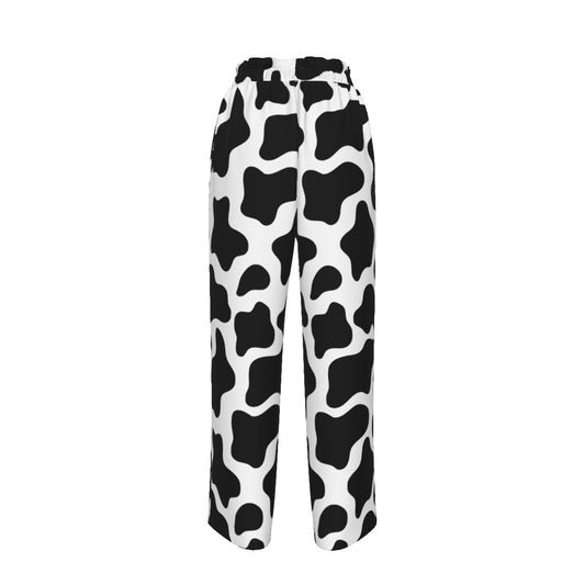 Cow Print Pants Cow Pattern All-Over Print Women's Faux Silk Wide-Leg Pants