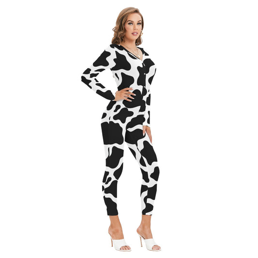 Cow Print Jumpsuit Cow Pattern All-Over Print Women's Plunging Neck Jumpsuit