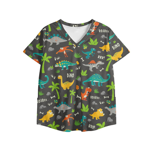 Dinosaur Print Scrubs Children's Hospital Scrubs Womens Printed V Neck Workwear Nursing Tops