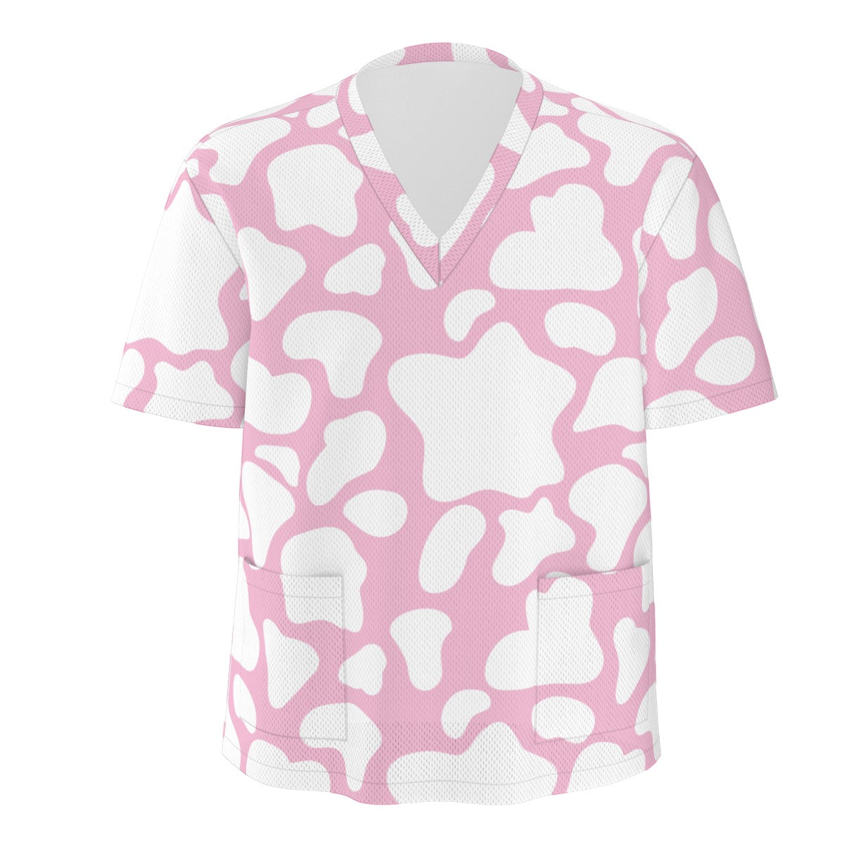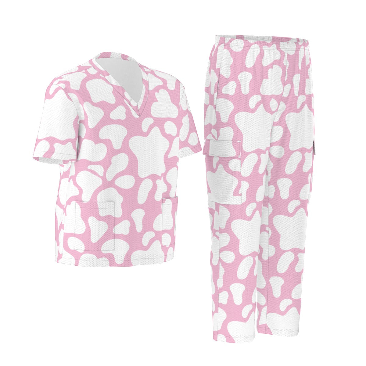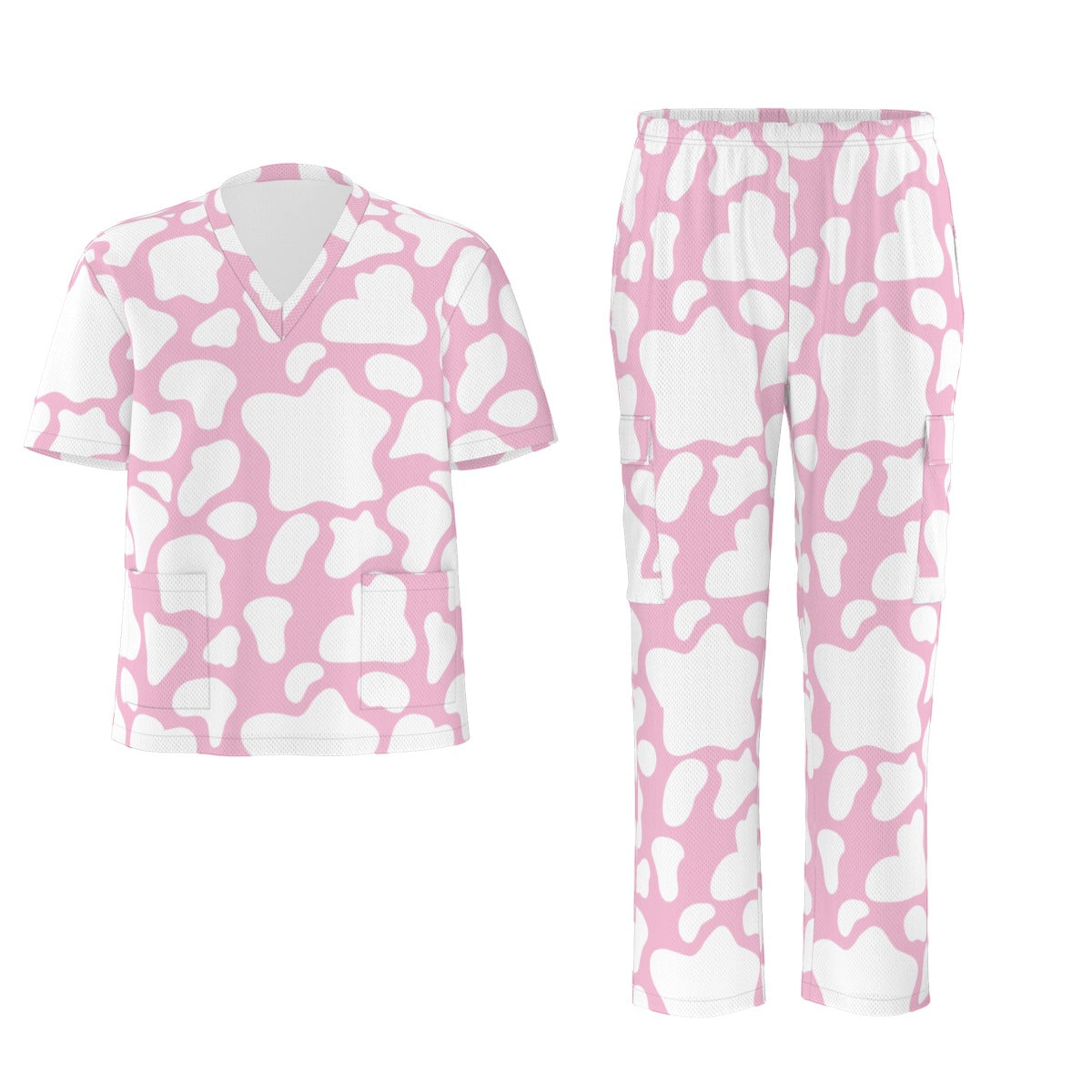Pink Cow Print Scrubs Nursing Cow Spot Scrub Set Hospital Scrubs Strawberry Cow Print Scrubs