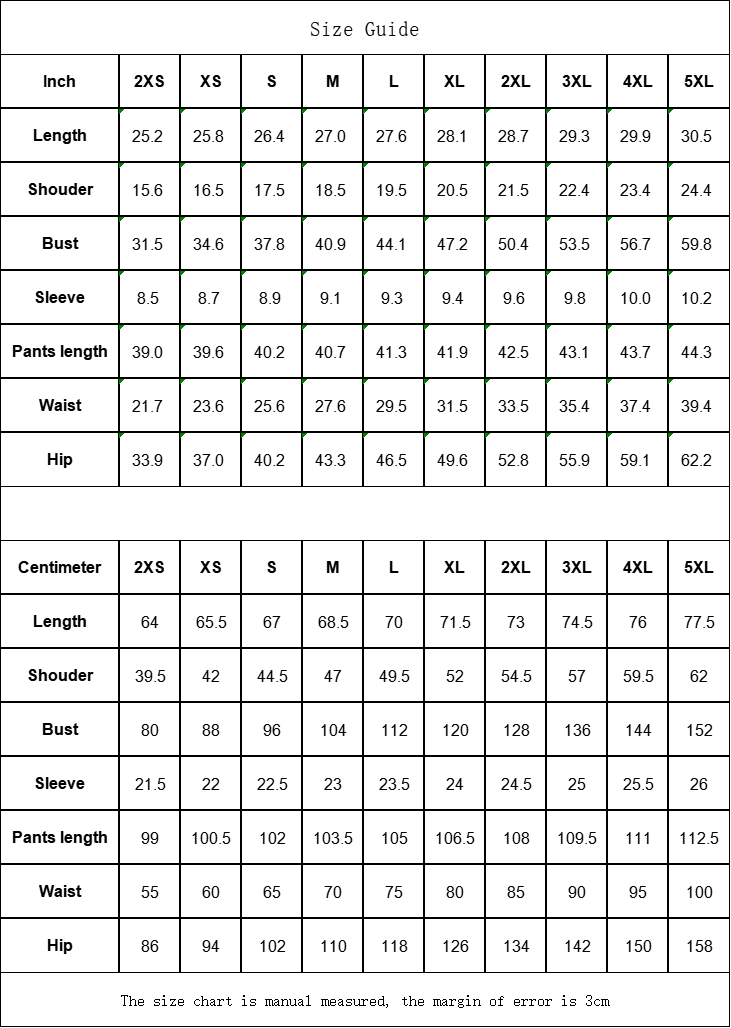 | Centimeter | 2XS | XS | S | M | L | XL | 2XL | 3XL | 4XL | 5XL |